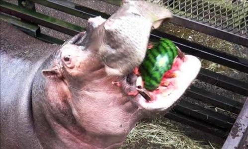 一、河马吃瓜,萌态十足